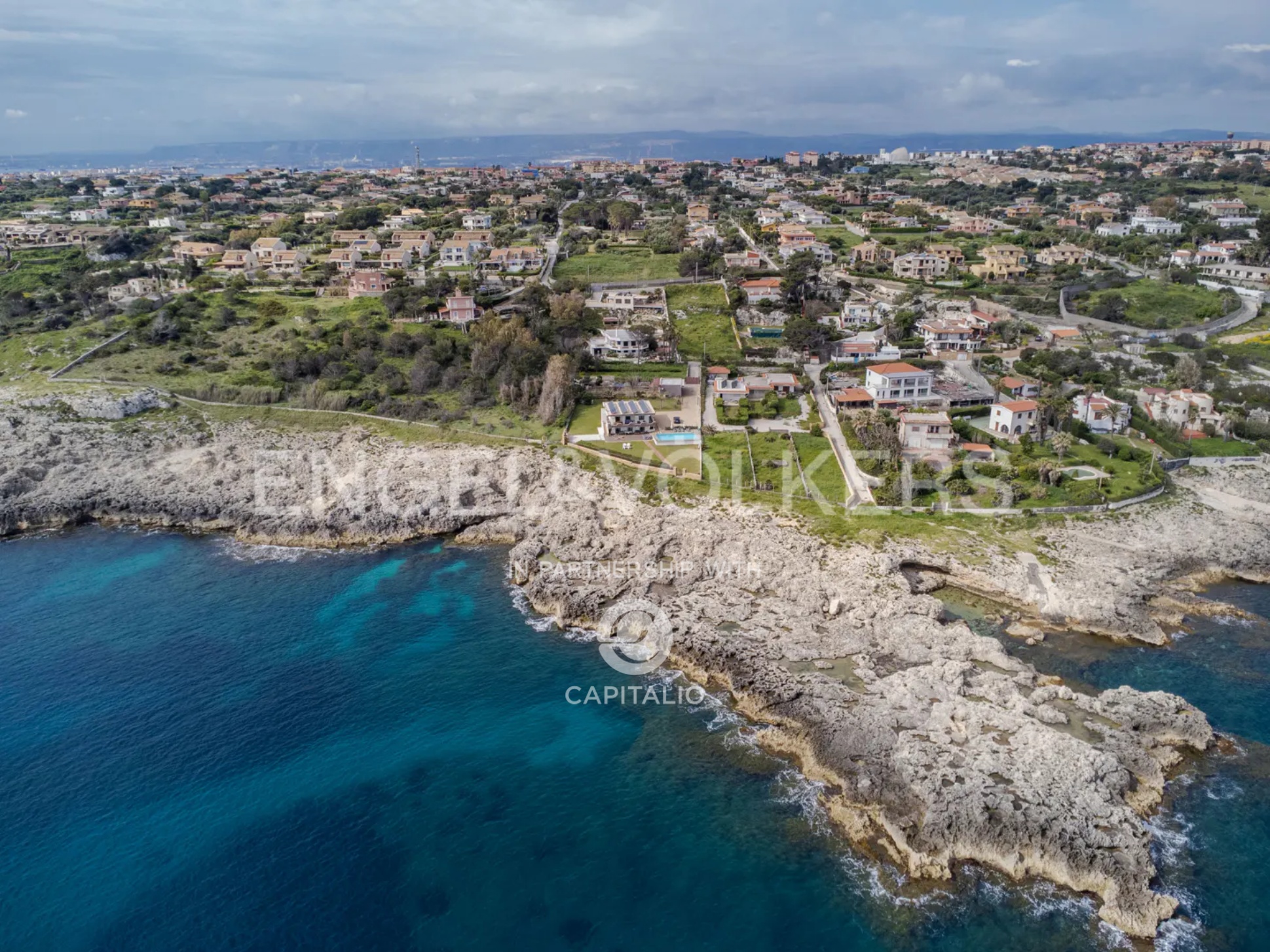 The property is located on the coast of Augusta on a promontory facing the sea, from which one can enjoy the enchanting view of Mount Etna in the background. The villa is set in a large plot of land, rich in pine trees. It has the typical architectural features of 19th-century Sicilian farmhouses. The main unit of the villa is spread over a single level and opens onto a large living room, three bedrooms, a kitchen, two bathrooms and two winter gardens that allow one to enjoy the view outside even in the coldest weather, which is rare in this region. The heart of the villa is the courtyard, rich in plants and with the typical atmosphere of Sicilian farmhouses. The property also includes a charming dependance with a covered veranda, a kitchen, a lovely living room, a bedroom and a bathroom.