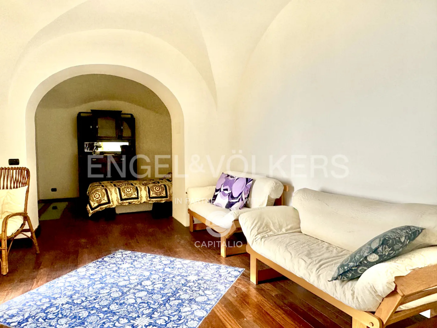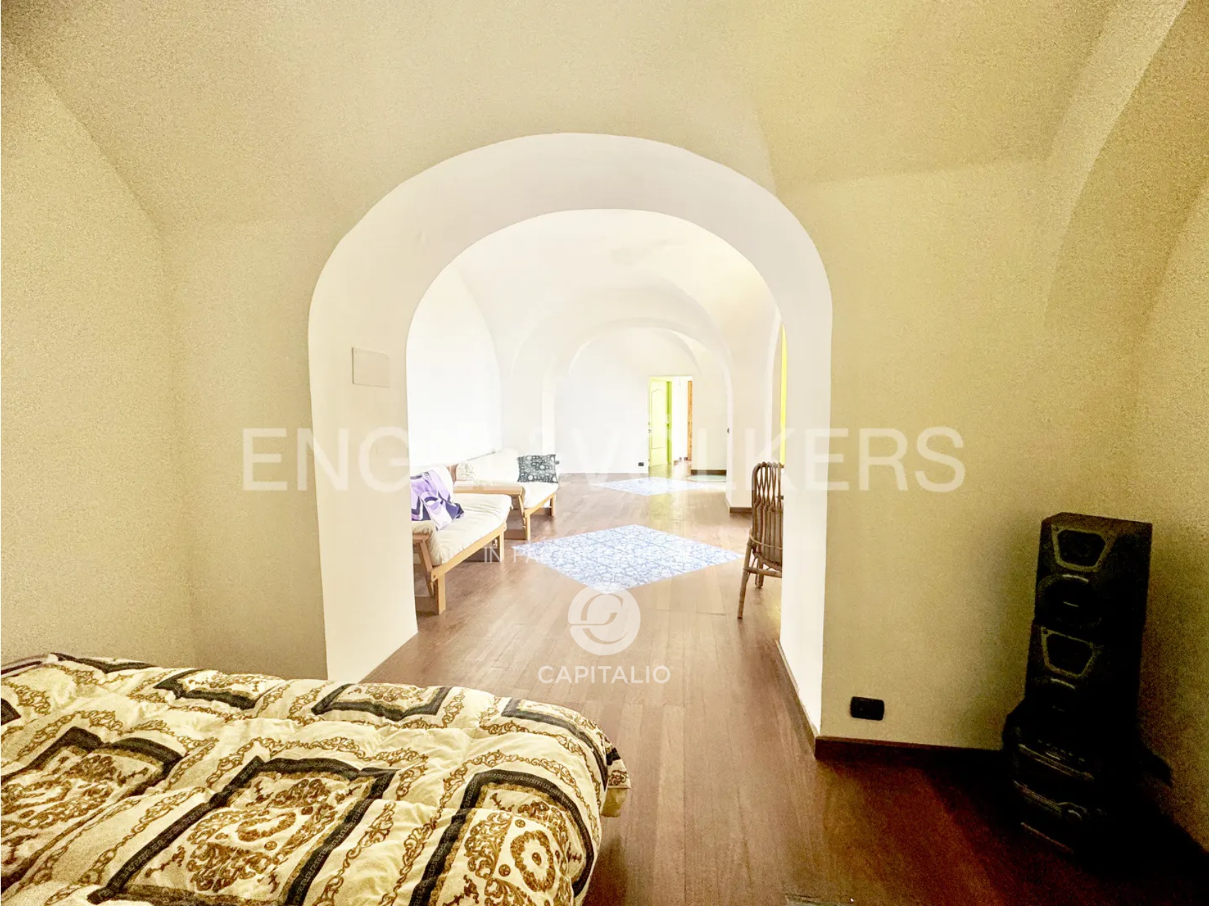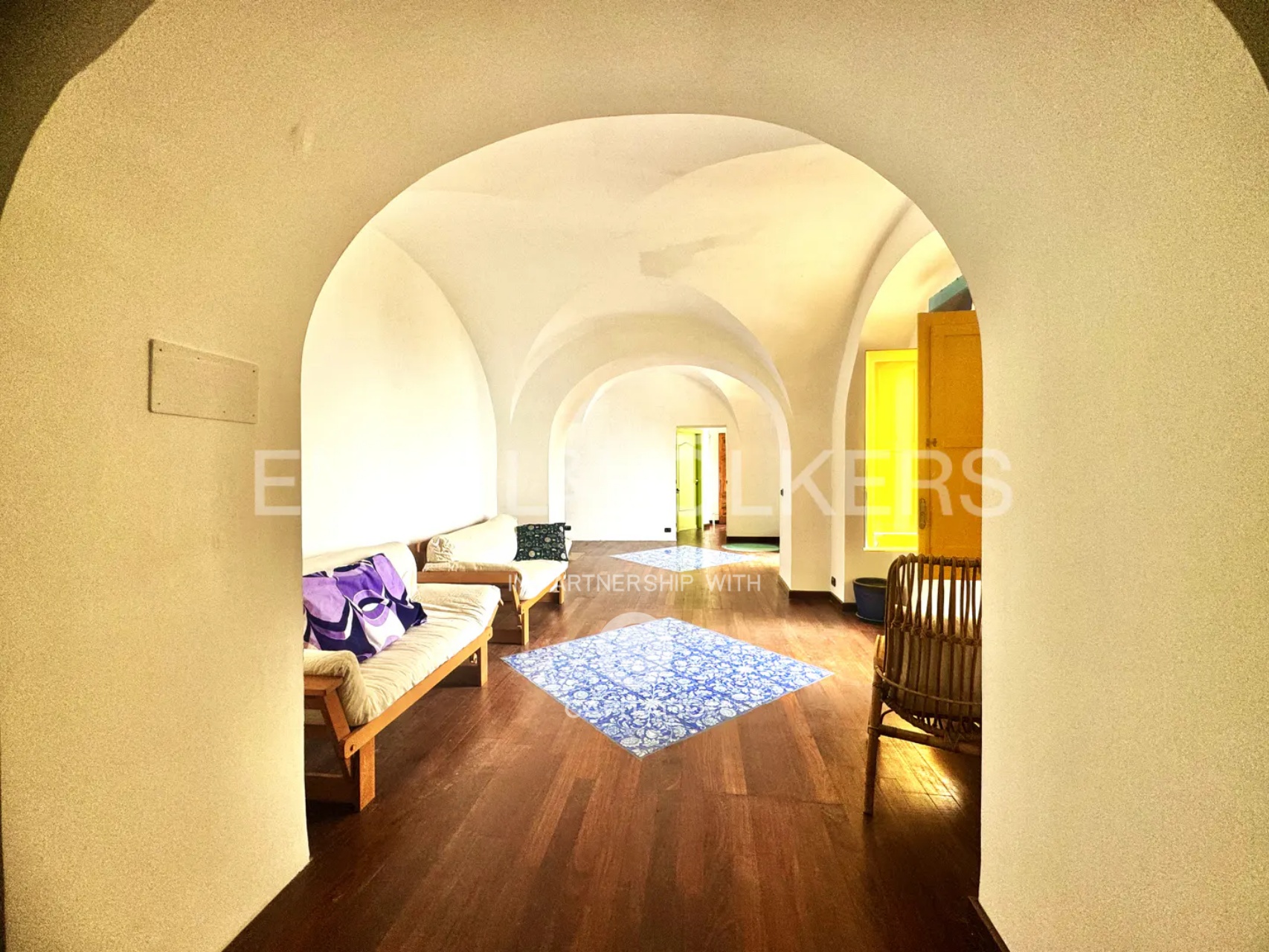 A further advantage of this solution is represented by the garden on the ground floor, an oasis of about 60 square meters that offers a suggestive view of the sea and the iconic bell tower of Atrani. A pergola shaded by a lush vineyard completes this outdoor space, ideal for moments of family relaxation or for those who, with the arrival of the beautiful season, seek a quiet corner to regenerate the mind and escape city stress, dedicating themselves to inner well-being.