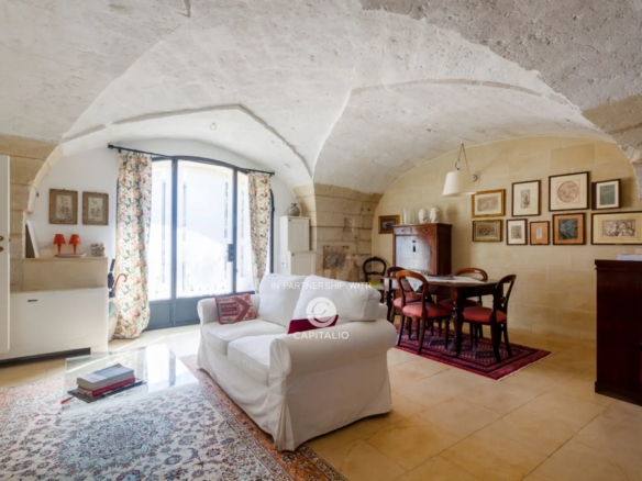 In the village of Palmariggi, just minutes from the turquoise waters of Otranto, stands a palace that embodies the perfect union of history, design, and sustainability. Carefully renovated with meticulous attention to detail, this historic building has been transformed into a delightful residence with high energy efficiency, where the ancient breath of Lecce stone harmoniously blends with the most modern housing comfort technologies. Inside, four bright and refined bedrooms welcome guests in a warm and enveloping atmosphere, enhanced by sophisticated furnishings, natural materials, and artisanal details that convey the beauty and authenticity of the region. The spaces coexist in perfect balance between tradition and modernity: star vaults and stone walls converse with soft lighting, essential surfaces, and cutting-edge energy solutions. In the private courtyard, a small corner of paradise: a heated mini-pool offers moments of pure relaxation under the clear Salento sky, amidst the scent of olive trees and the song of cicadas. Notable features include: compartmentalized electrical and plumbing systems, an underground cistern with a pump for excess rainwater disposal, a dedicated drain for the pool, inspection wells for sewer discharge, a drip irrigation system with a timer, a water softener, UV lamp, and a large autoclave, a heat pump with a centralized system and splits in all rooms, electric towel warmers in the bathrooms, a solar system connected to a Daikin machine for hot water, on the ground floor two large “Vortice” fans to facilitate air circulation when the house is closed, an anti-intrusion system with cameras and monitor, WiFi throughout the house, now ready for fiber connection. The ideal solution for those seeking their home in Salento, combined with ample space to generate income through seasonal rentals management.