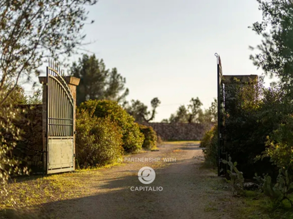 The garden of more than one hectare is divided into a lawn garden around the house, orchard and olive grove on one side and Mediterranean scrub on the other, the garden is entirely enclosed with a dry stone wall and overlying net, ensuring security and privacy.