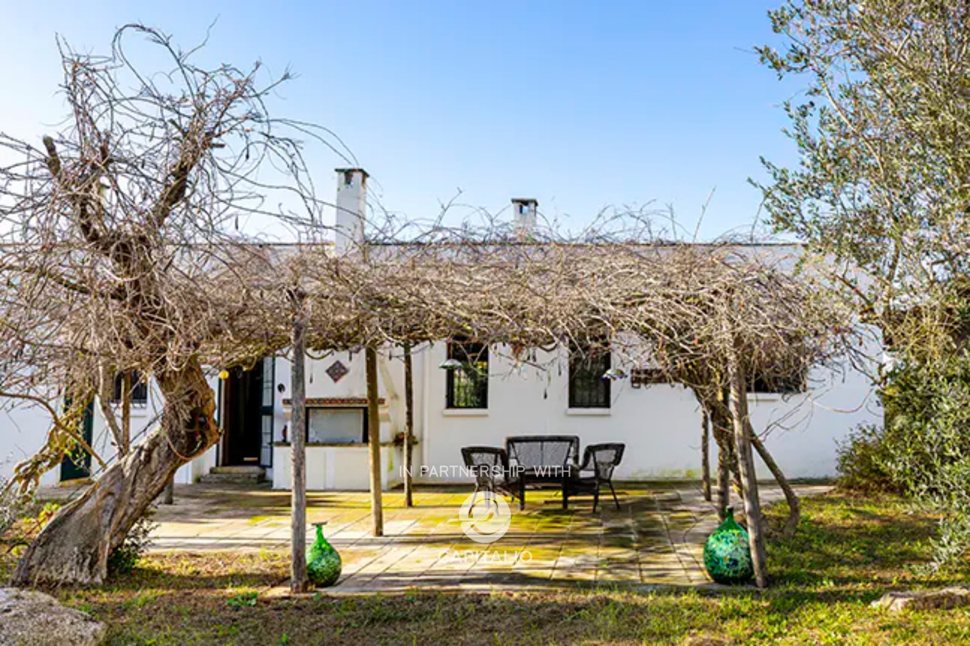 At the back of the house, a magnificent pergola covered with lush wisteria offers a charming atmosphere for most of the year. This fresh and welcoming outdoor living area is equipped with an open fireplace for outdoor cooking and connects directly to the pool, ideal for summer days.