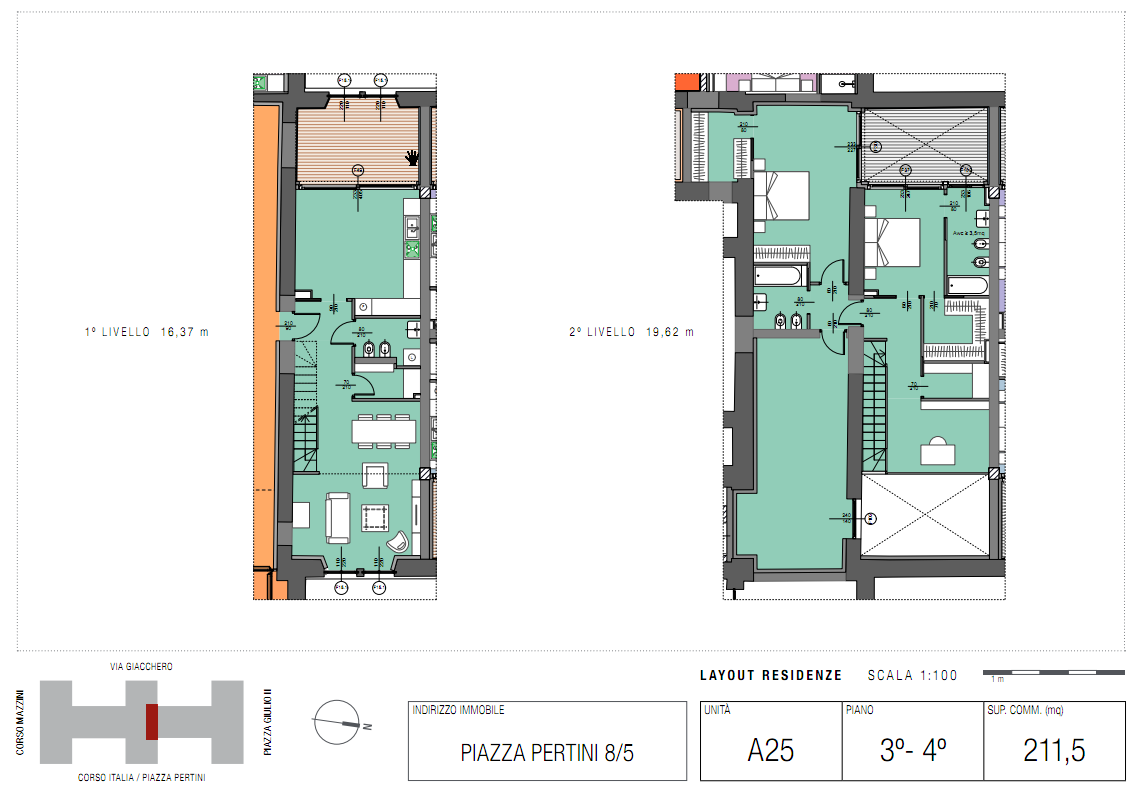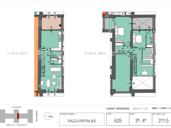 Situated within the prestigious “San Paolo” redevelopment, this exceptional duplex apartment spans two levels and offers the perfect balance between historical charm and contemporary living. From the moment you enter, the space impresses with its generous proportions and refined finishes. The open-plan living area is bathed in natural light, seamlessly connecting to a large, habitable terrace – an ideal setting for al fresco dining or simply relaxing in privacy. The home’s thoughtful layout includes a fully equipped kitchen, inviting living spaces, and elegant bathrooms finished to the highest standard. Residents benefit from the building’s state-of-the-art seismic safety, energy efficiency, and exclusive amenities, making this property both a luxurious home and a secure investment in the heart of Savona.
