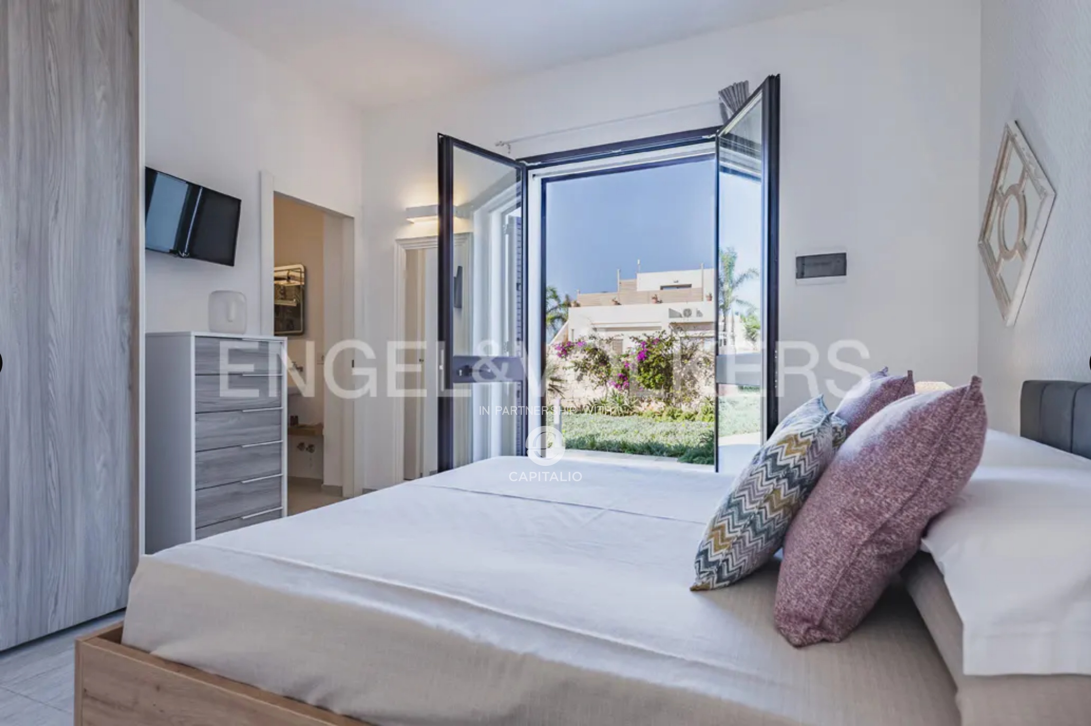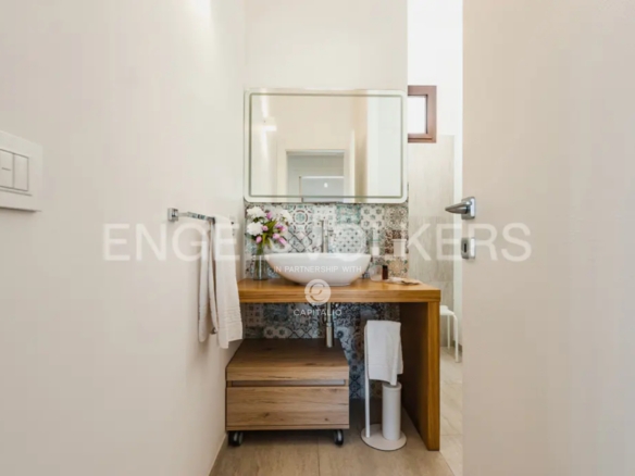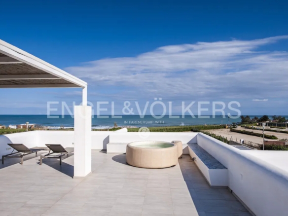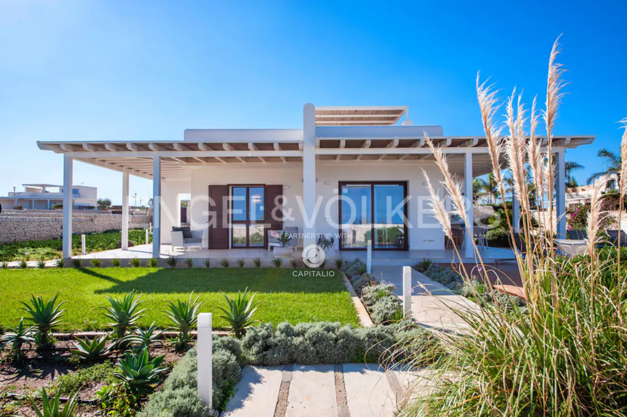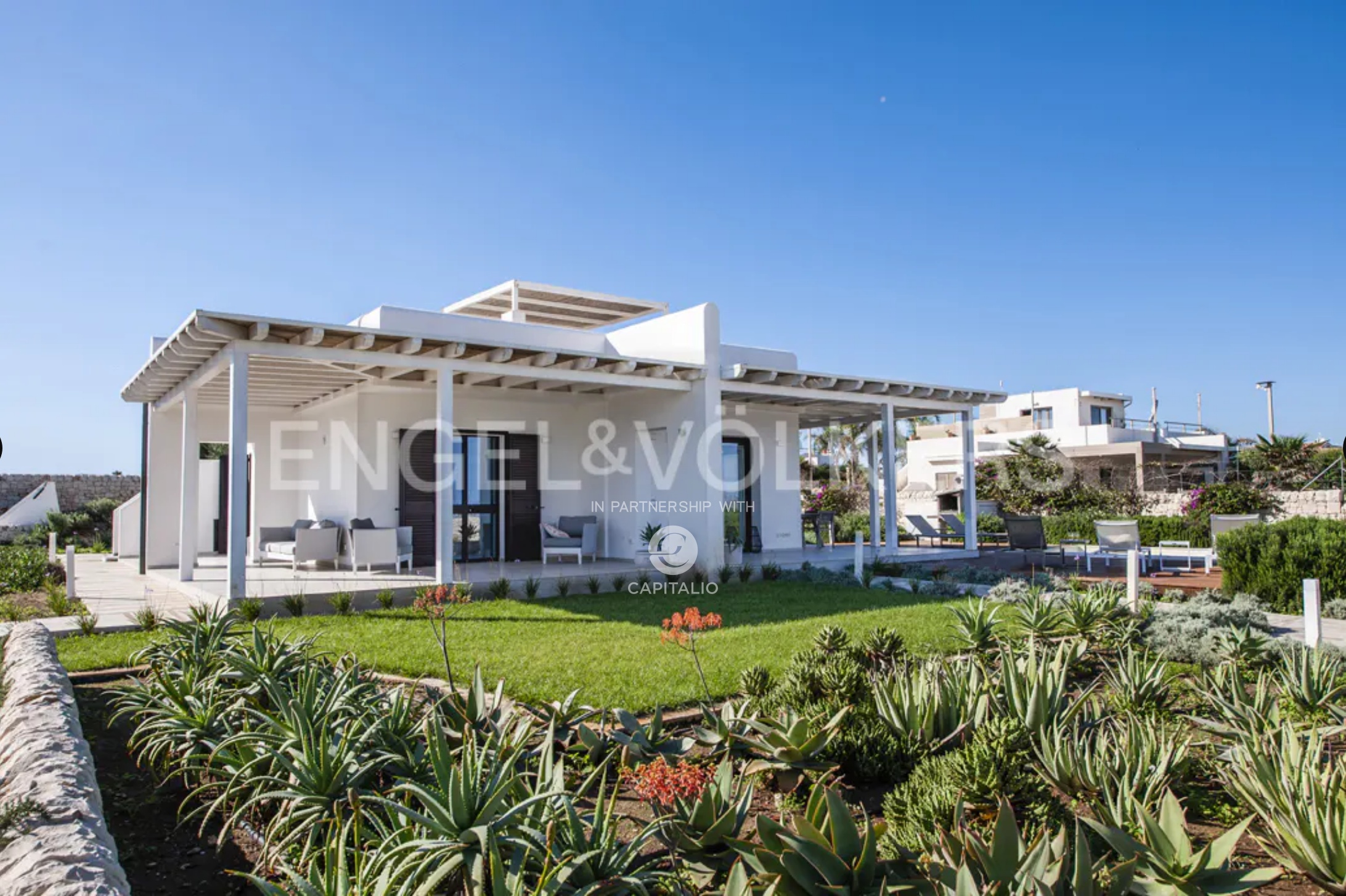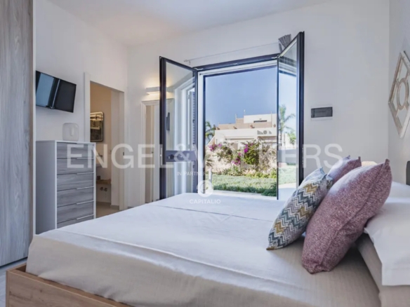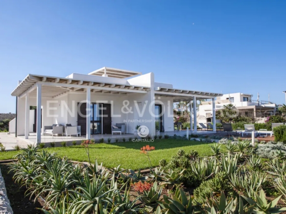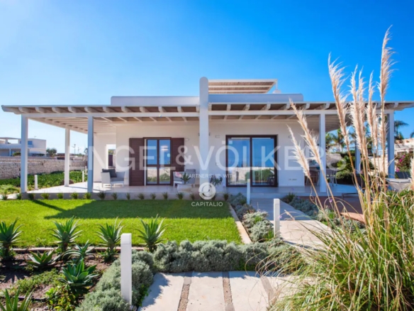 This wonderful villa of about 140 sqm with private garden and swimming pool is located in the extraordinary scenery of the village of San Lorenzo . The villa, characterized by a modern style and minimal design, stands by the sea with direct access to the beach. Designed with refined taste, it consists of two double bedrooms both with en suite bathroom, a living room with sofa bed, one more bathroom. The kitchen is opened on two sides by bright sliding glass doors in order to capture maximum sunlight and connect with the following outdoor areas: the living room and relaxation area covered by a large canopy. The villa is enriched by a lovely garden with attention to every detail along the entire perimeter, a large terrace with solarium to enjoy pure relaxation even in the moonlight. A further interesting plus is represented by an area of about 1000 square meters adjacent to the villa to be used as private parking. The attention to energy saving represented by the insulation of the walls and the presence of double glazing and photovoltaic system is also an important plus. The villa from the incomparable view, lends itself to be used both as a profitable investment in the circuit of vacation homes as well as for personal use, representing the ideal and excellent solution for those who want a context close to the poles of attraction and tourism, while seeking tranquility.