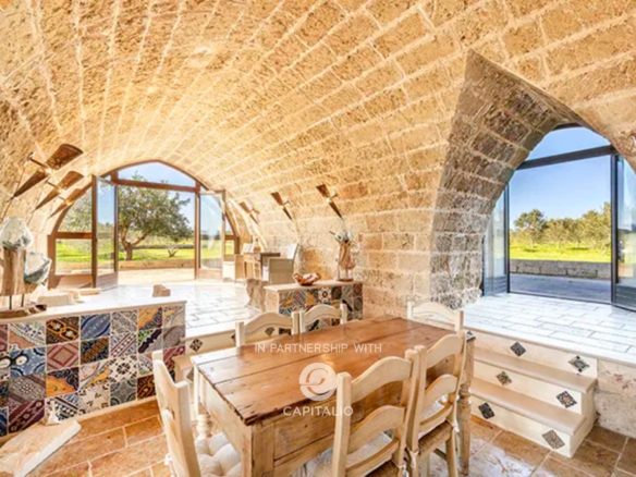 The ground floor houses two living areas characterized by barrel vaults, entirely made of exposed stone, which give a warm and timeless atmosphere.
