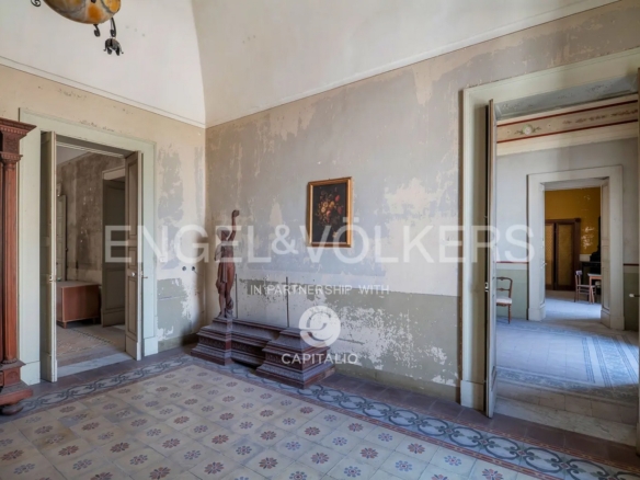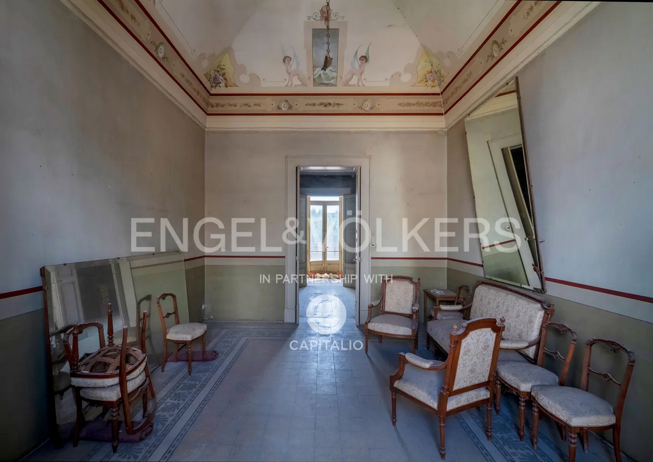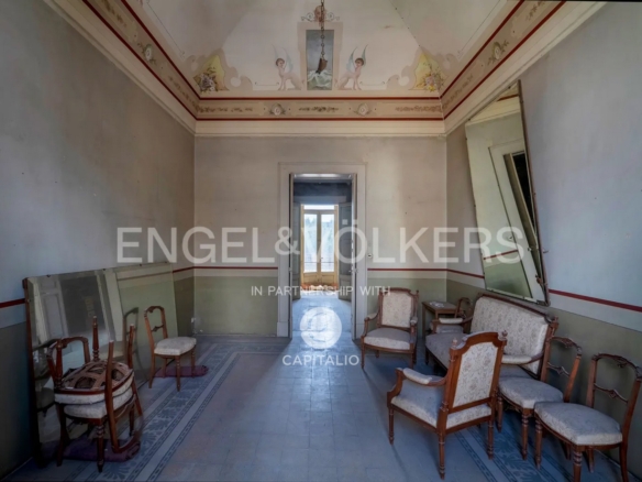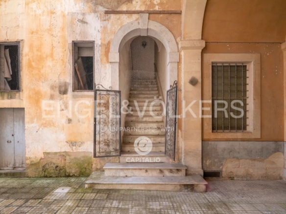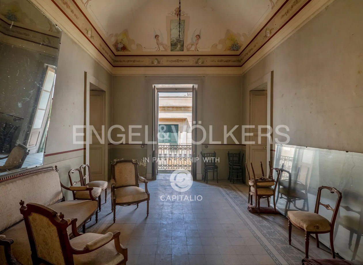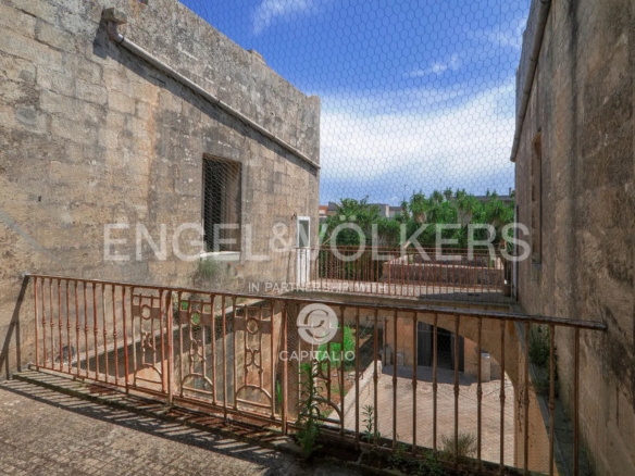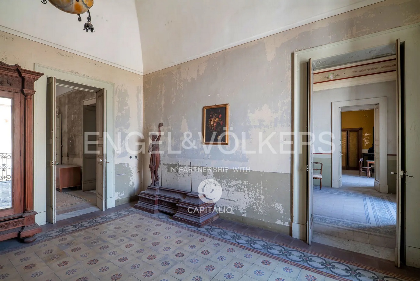 This property certainly encapsulates all these characteristics. The charm it exudes is unchanged over the centuries. Located on one of the streets in the city center, the family that still owns the palace has its origins here in Maglie. A family of entrepreneurs who, as early as the 1800s, began making important voyages and then continued in the early 1900s, throughout Europe and even to India and America to organize ships destined for the Italian market. Entering through the main door immediately one realizes that one is in a very special, ancient, well-designed environment. On the left some rooms dedicated to workshops and on the right a small apartment then, continuing the garage and a large, well exposed courtyard. Marble stairs with cast-iron railings lead to the main floor and here a succession of representative rooms with vaulted ceilings and frescoes in delicate colors and motifs, until you reach the yellow living room and then the red living room precisely because of the shades of the frescoes. Authentic and beautiful cement tiles, black and, in other rooms, red checkerboard floors, balconies and terraces all the way to the solar pavement from where there is a view that reaches far into the distance. Certainly the property needs renovation work but, in general, the condition is very good. Ideal for a private residence or for several private residences as well as to make a splendid dwelling intended for receptivity, perhaps taking advantage of the benefits that the Puglia Region allocates to these initiatives.