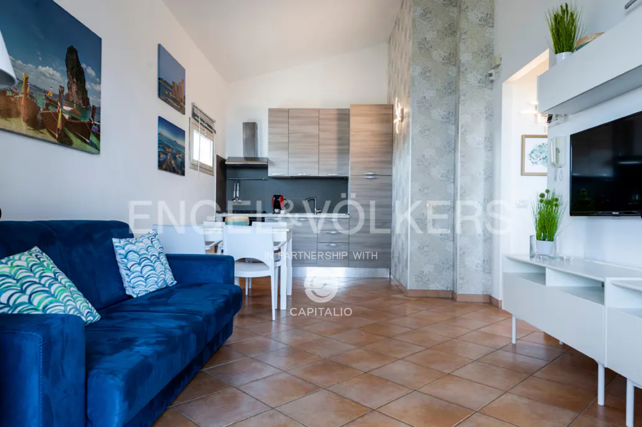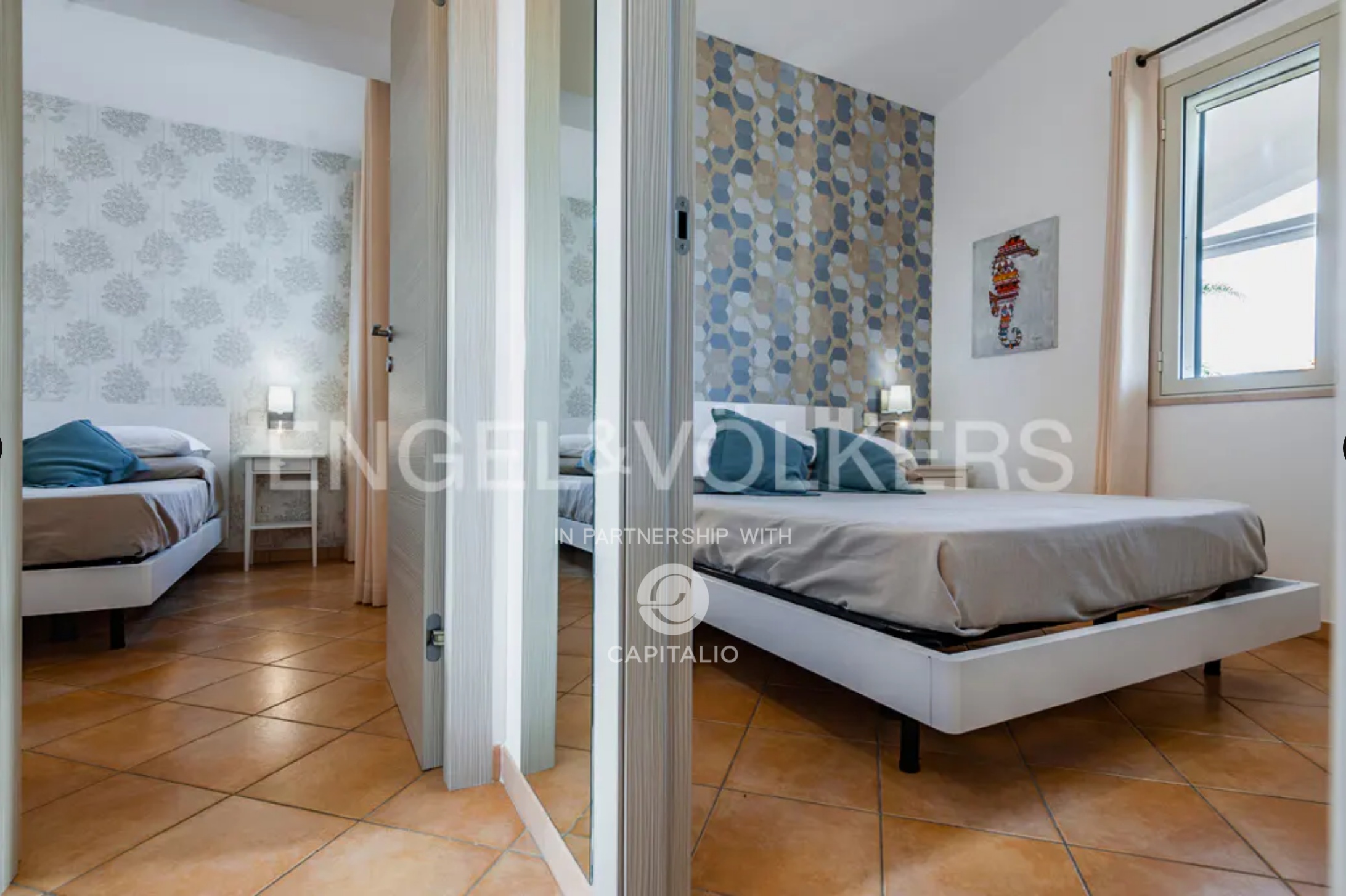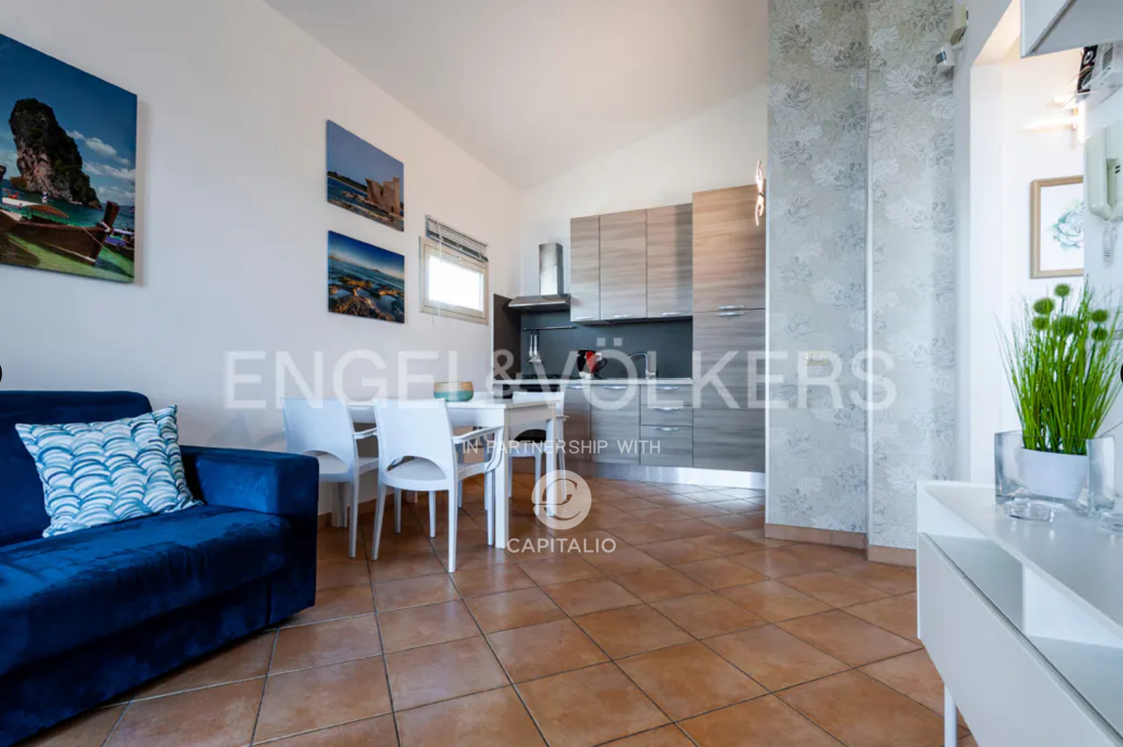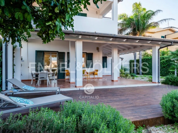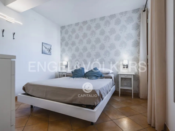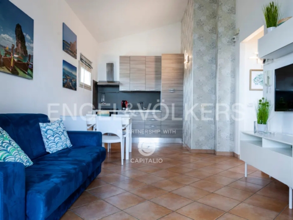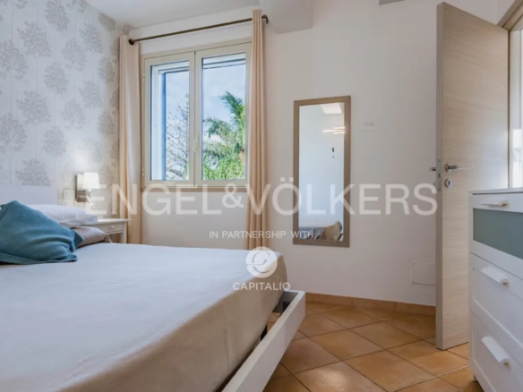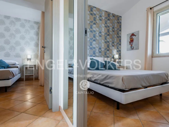 The Euthalia apartment is about 110 sqm and belongs to the exclusive Anny Residence, which is located a few steps from the beautiful beach of San Lorenzo. This lovely sea view apartment has been recently renovated. It has modern style furniture with a minimal design. The flat occupies the ground floor and consists of a large living – dining room with sofa bed, kitchen area, two bedrooms, two bathrooms, one en suite and the other placed along the corridor, in front of the second bedroom. Outside the property there is a large well-kept garden, where you can relax and enjoy the open air thanks to the presence of a barbecue area. The flat could be suitable for an investment in the circuit of holiday homes as well as for residential use, representing the optimal solution for those who are looking for a quiet place, not far from the main local touristic attractions.