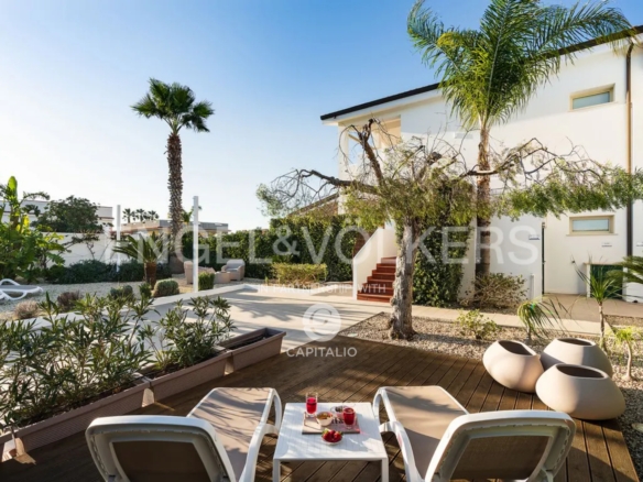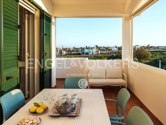 The Fillide apartment is about 100 sqm and belongs to the exclusive Anny Residence, which is located a few steps from the beautiful beach of San Lorenzo. This lovely sea view apartment has been recently renovated. It has modern style furniture with a minimal design. The flat occupies the first floor and consists of a large living-dining room with sofa bed, cooking area, two bedrooms and two bathrooms, one of which is located between the two bedrooms and the other on the ground floor, that you can access via the external staircase. This staircase also leads from the private garden directly to a spacious veranda with pleasant sea view, to enjoy the coolness of the evening, while relaxing at home. The flat lends itself to be used both as an investment in the circuit of holiday homes and for personal use, representing the optimal solution for those who are looking for a quiet place, not far from the main local touristic attractions