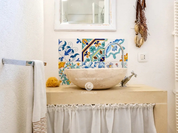 The main structure, arranged over two levels, retains the charm of Salento architecture with star vaults and original materials such as chianche floors, tuff, and natural-colored plasters; the interiors are furnished with elegant simplicity and offer comfort and practicality.