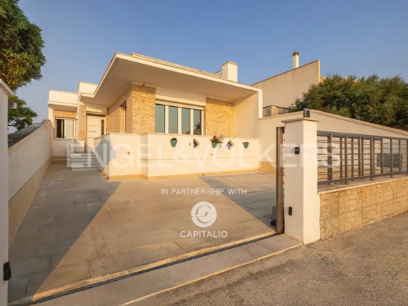 The villa has three elegant bedrooms, a large living area with fireplace, Scandinavian-style kitchen with pantry, and laundry room. The outdoor spaces include a large terrace and a panoramic rooftop, ideal for enjoying the sea horizon from a unique perspective.