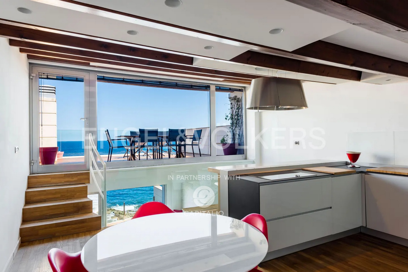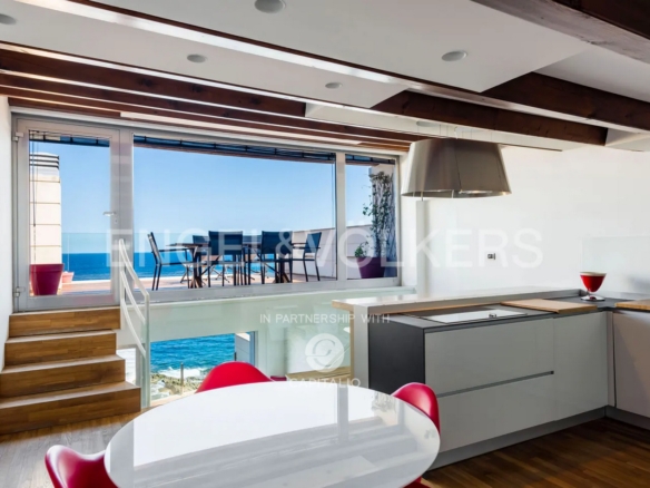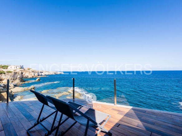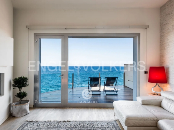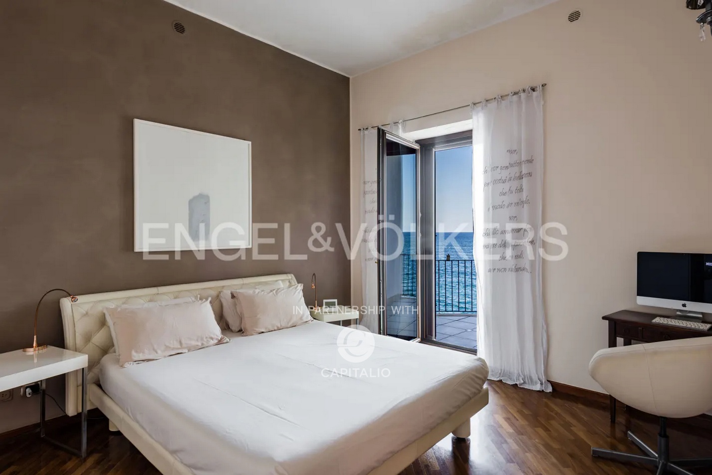 It is rare to find a more striking and engaging waterfront than that offered by this property. The property is a detached house spread over three levels with a total area of 215 square meters. From street level, the property greets us with a beautiful courtyard, an intimate private garden that allows privacy from street noise. From here, the front door opens to an open space that occupies the entire floor, with the exception of a bathroom serving the living area. Our attention is immediately caught by a large window that leads us to a terrace overlooking the sea with a breathtaking view. It is not only the sea that fills our view, but a poetic view of the island of Ortigia that can be admired in its entirety. This is the first of three sea terraces we will encounter within the property. In fact, each of the three floors has a terrace overlooking the sea cleverly placed to serve the most important areas of the house, the living area, the kitchen and the master bedroom. A convenient staircase will lead us to the sleeping area of the house, consisting of the master bedroom with walk-in closet, a second bedroom also with an attached walk-in closet and two bathrooms, one of which has a splendid sea view. The strength of the property is its unrivaled location, the view of Ortigia at a short distance and the proximity to sea which is so close you can fall asleep lulled by the sound of the waves.