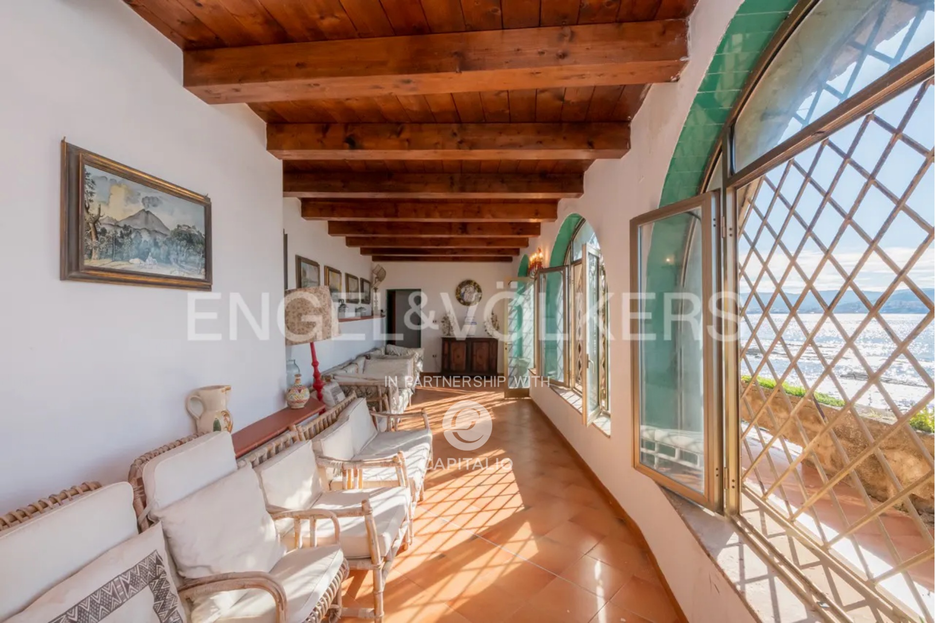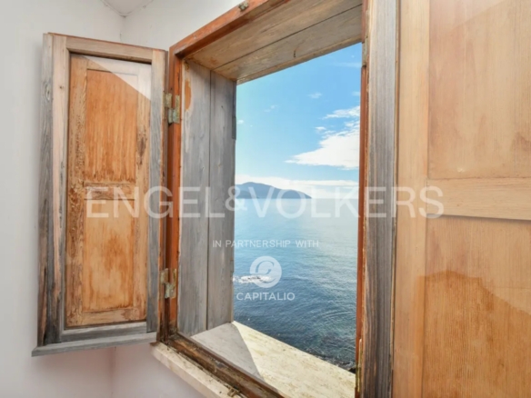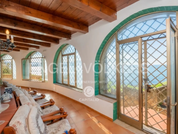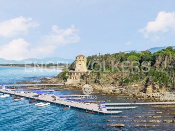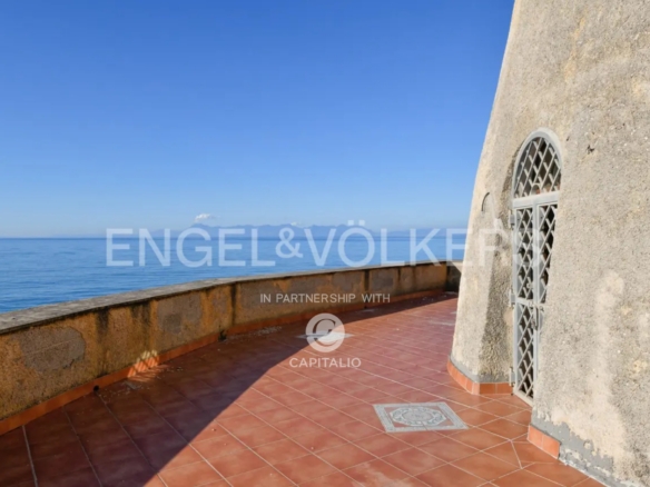 therapeutic waters that bathe the Tower. Currently it is a private residence distributed on a large floor ground with a huge dining room with ancient Vietri ceramics worked by hand; a large loggia facing the sea, furnished with elegance and which houses a living area from which you can enjoy the nature and the view that surrounds the property with absolute privacy, 8 bedrooms, 6 bathrooms, a large kitchen with adjoining laundry area, several deposits, beautiful terraces that have been created around what was once the ancient watchtower. From here the view embraces the entire coast of the Gulf of Salerno, from Punta Campanella to Punta Tresino with the magnificence of the island of Capri on the horizon. Going down 20 steps you reach the private beach and the wonderful sea under the Tower. The Villa is located at the entrance of the property and needs to be renovated. The natural beauty of the place combined with the evocative Ancient Tower, the possibility of creating a bridge with mooring right under the Tower; the park of about 2.4 hectares, the flavors of the local products to be used both in the kitchen and for SPA treatments: all this represents a potential to build a private paradise with few rivals in Italy or a Beach Resort that will amaze everyone!
