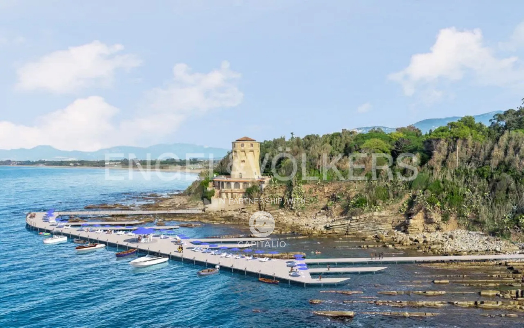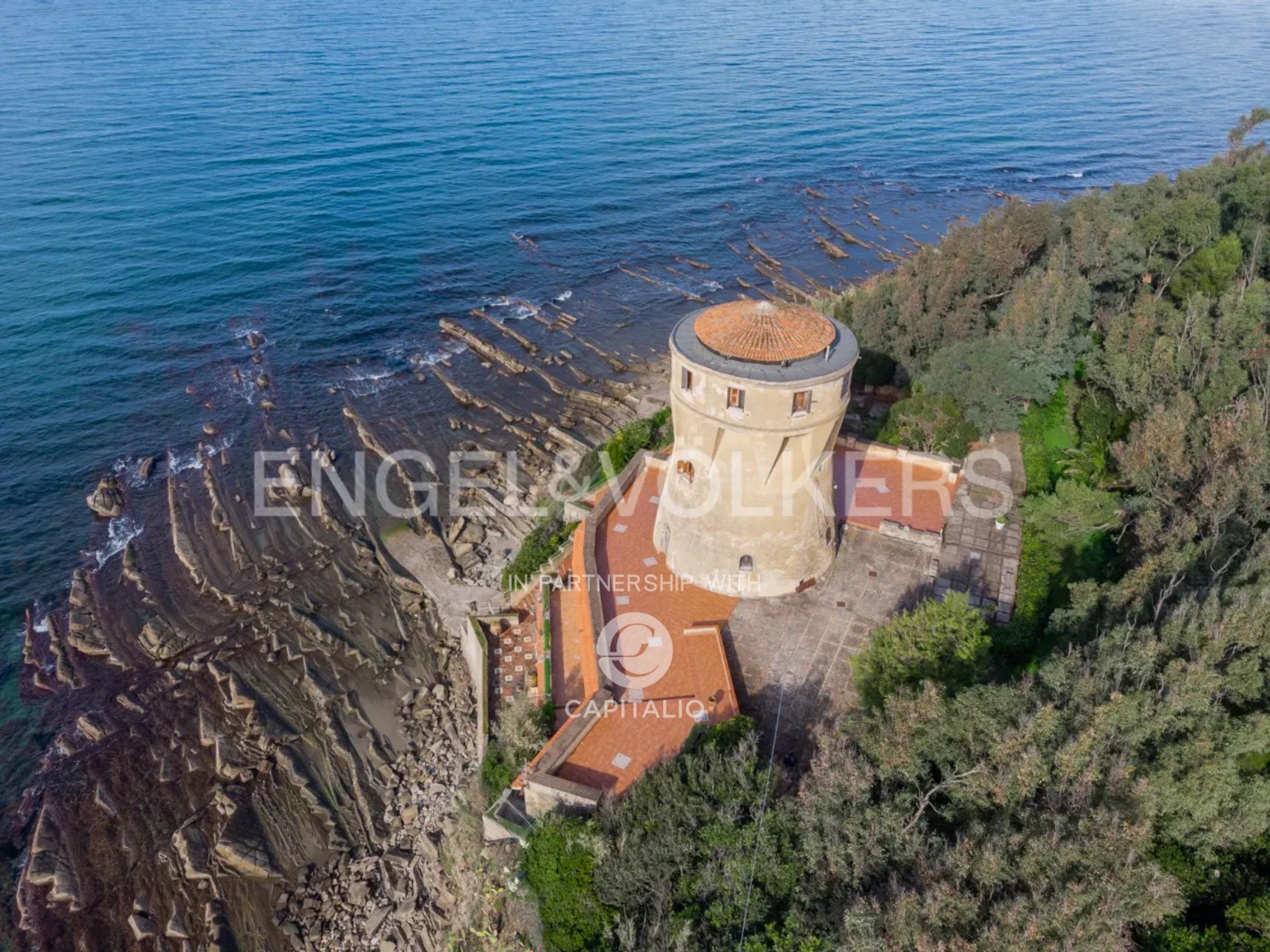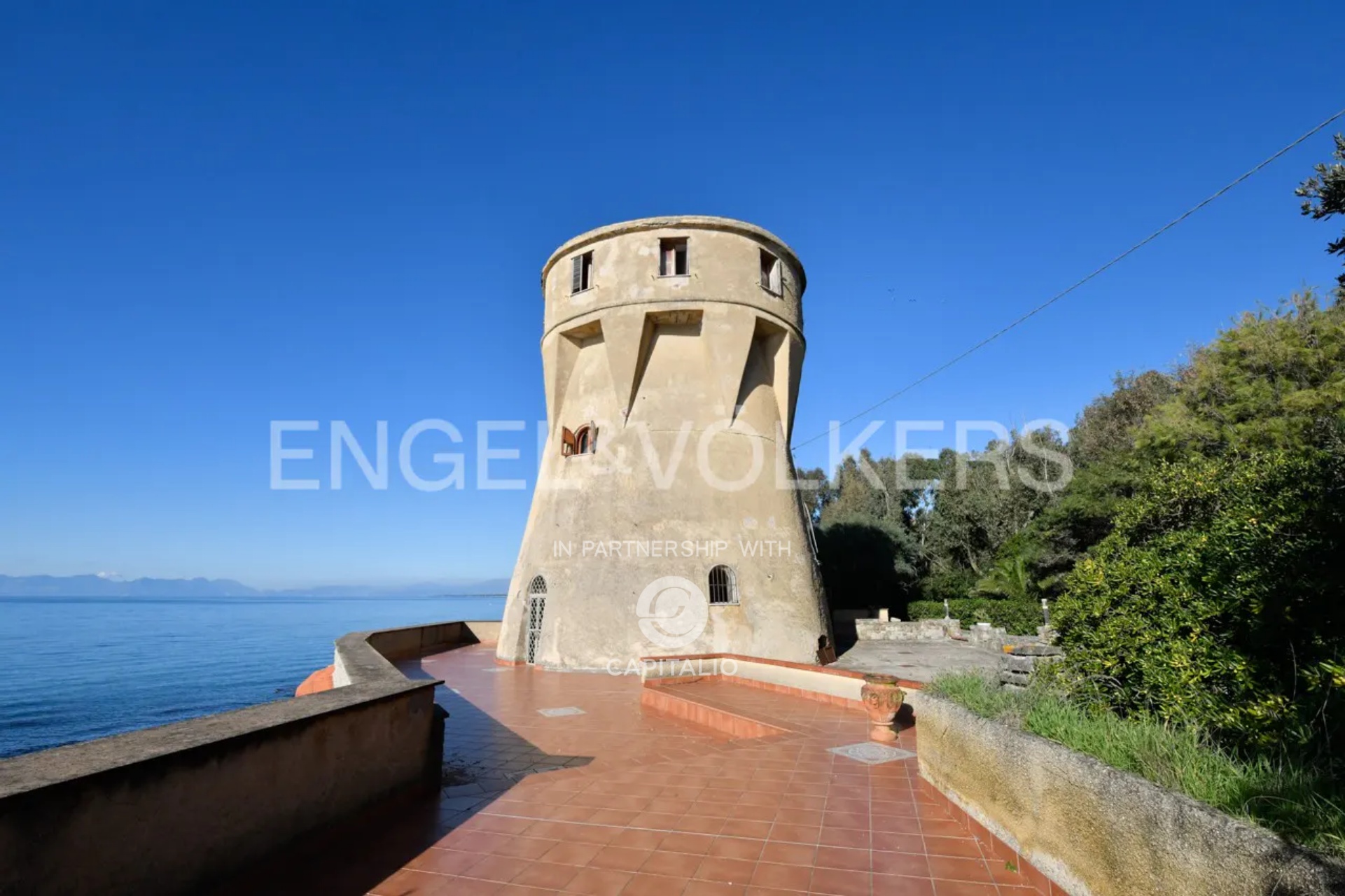 Architectural marvel in the Gulf of Salerno, and more precisely in Agropoli, characterized by an exclusive property with a dominant position on the sea and with a breathtaking view over the entire coast: a Tower of 1500 d.C. of 700 square meters, a Villa of the 60s of about 1000 square meters, a magnificent park of 2,500 square meters of Mediterranean scrub, autochthonous essences and majestic trees that frame and gently slope to the edge of the cliff where access to the sea is via a comfortable private staircase; the wide cliff is a small natural jewel set between the Mediterranean maquis and the sea. The Tower dating back to the ‘500 was originally a watchtower against the raids of the Saracens and pirates in the Mediterranean sea and it has preserved intact the authentic charm of the time that distinguishes it so much. Since 1800 doctors have sung the praises of the virtues