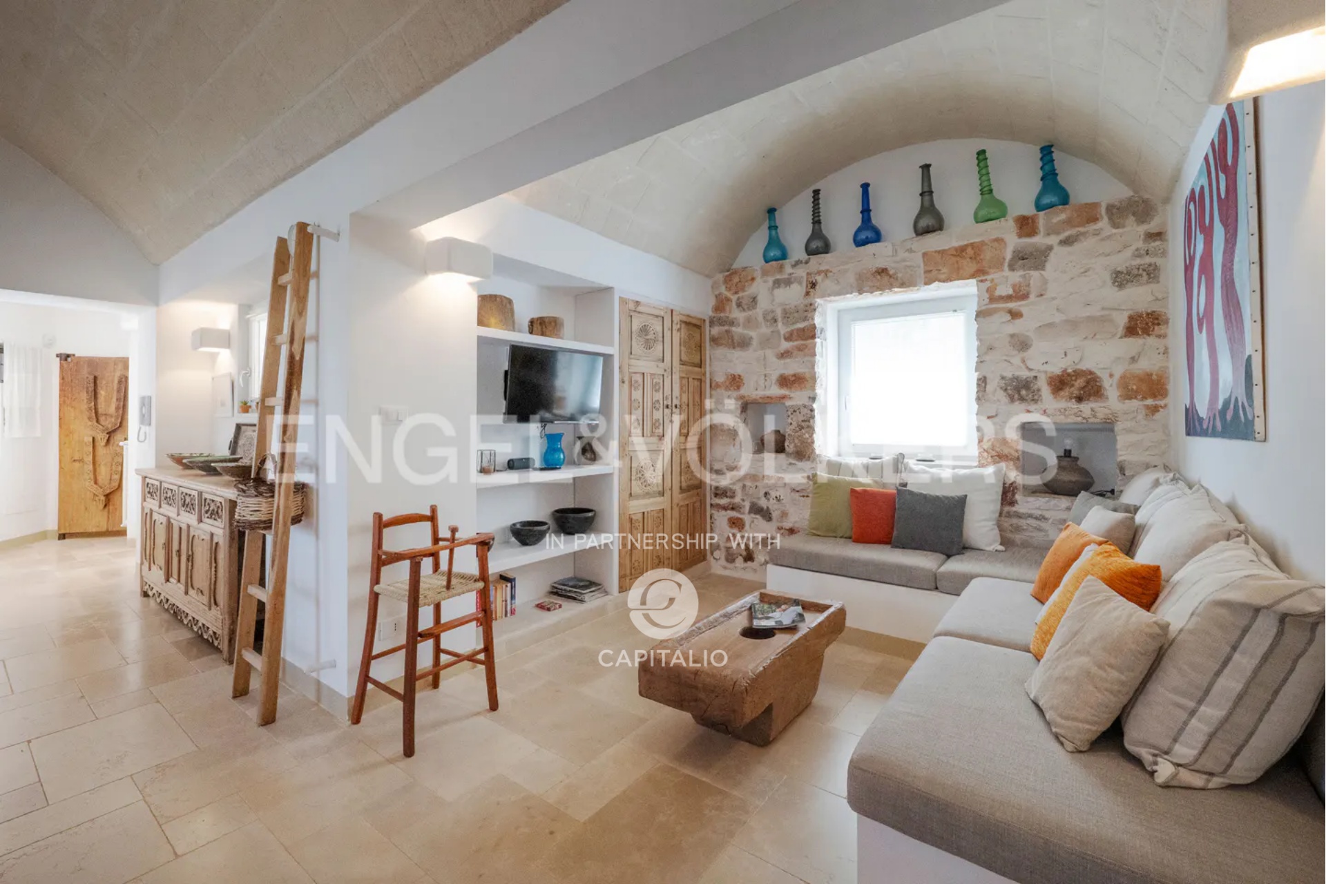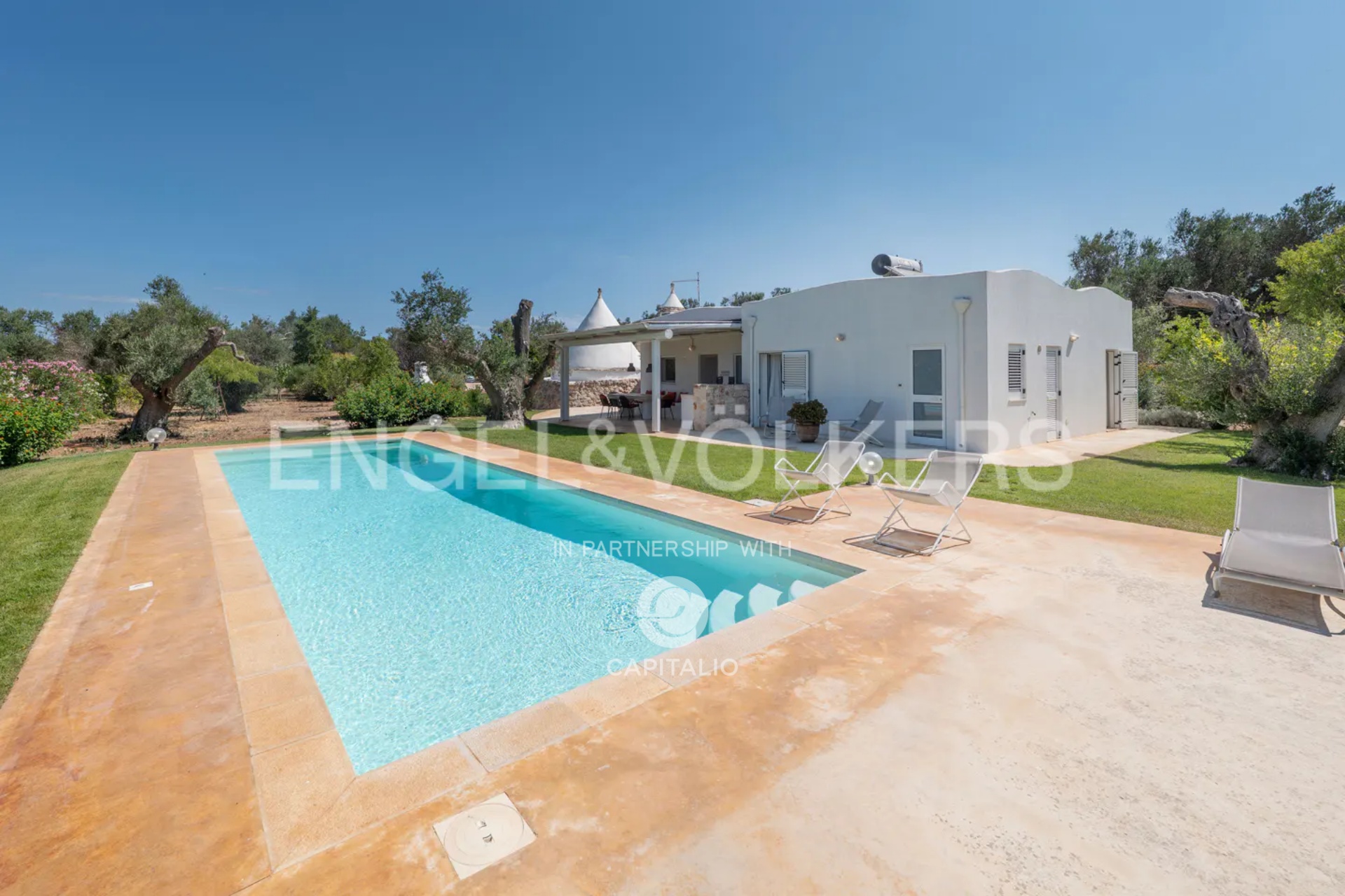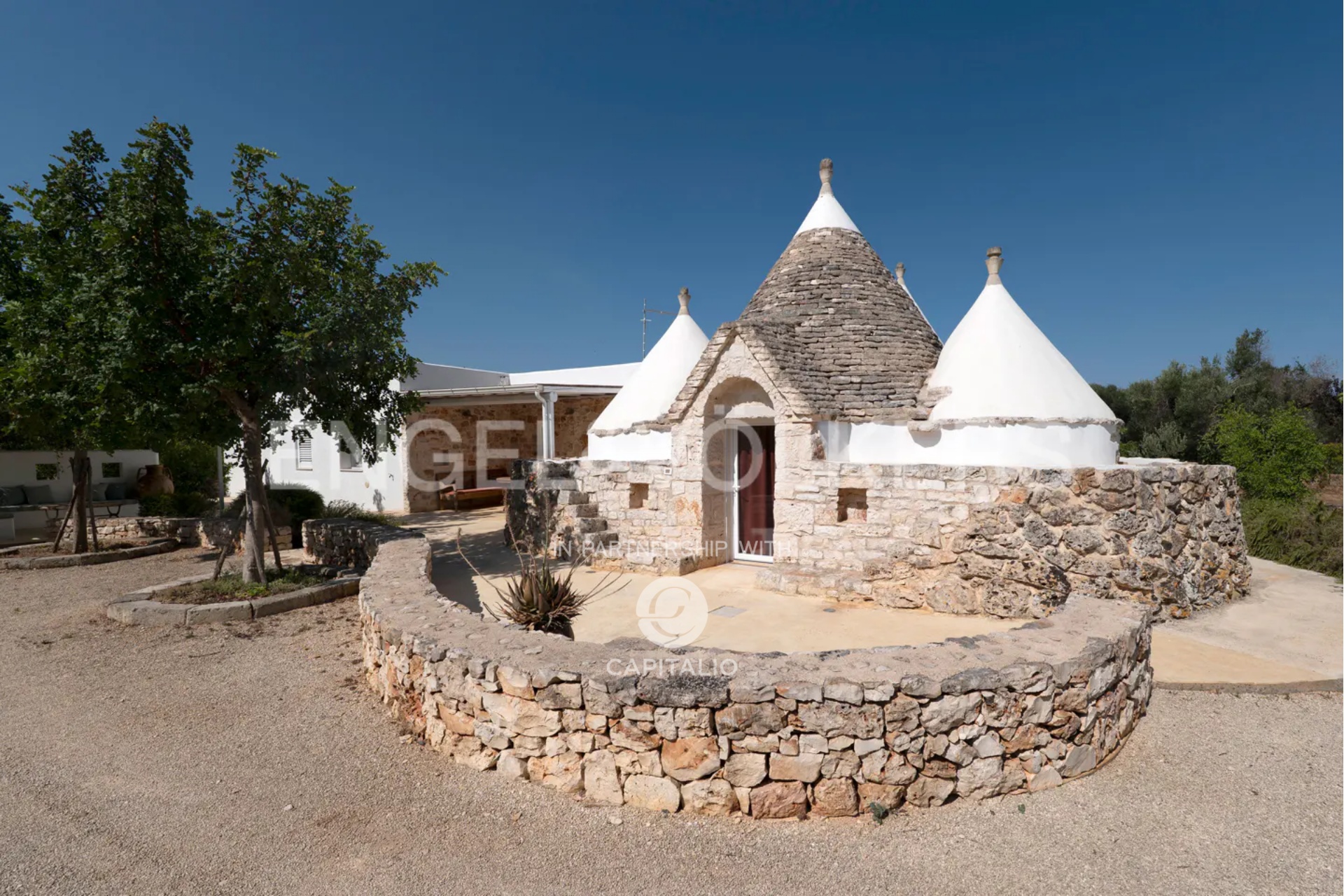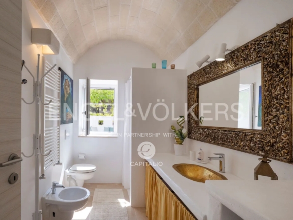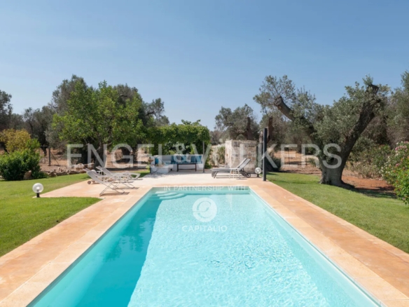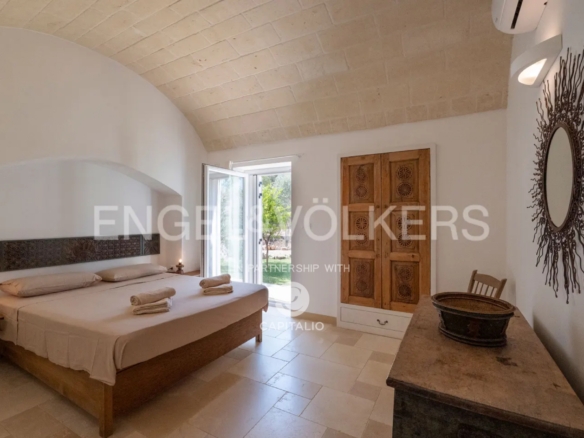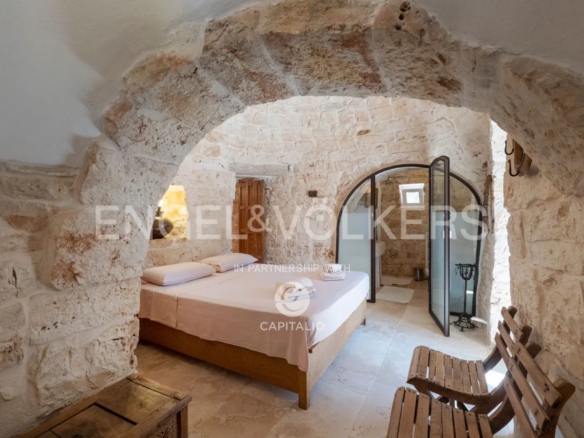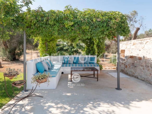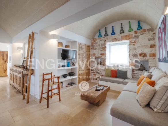 This property, called Trullo la Specchia, has a history spanning over two centuries. It was commissioned by a family from northeastern Italy, who conceived and designed it with the heart of those who discover a territory that has preserved its authenticity intact and want to make it their seasonal home to recharge and purify themselves, committing themselves to a renovation that respected the traditions, colors, and materials of the place, indulging themselves and offering their guests the best possible comfort.