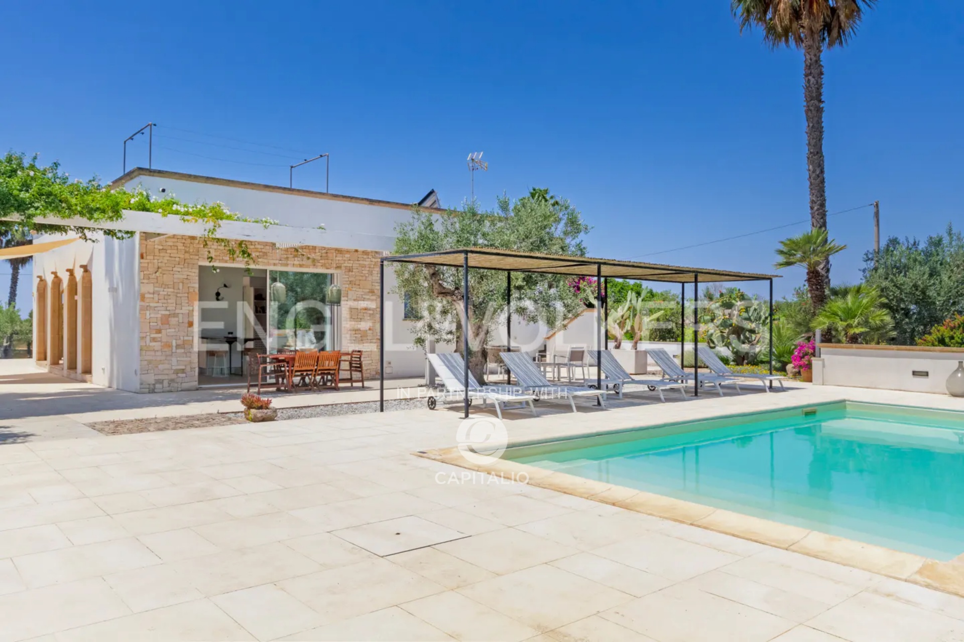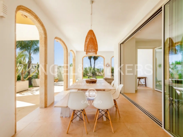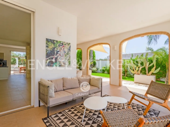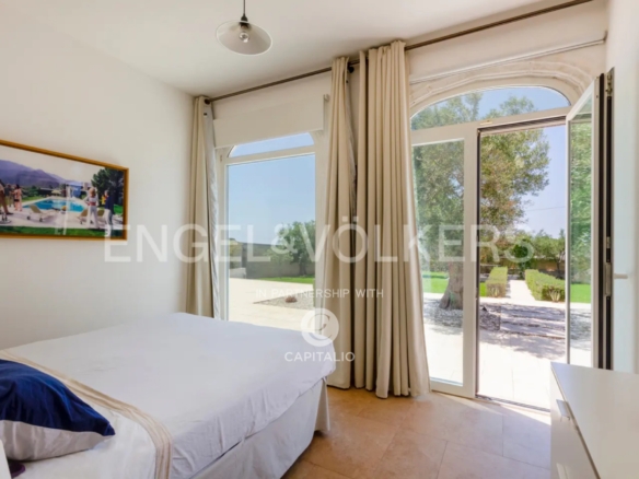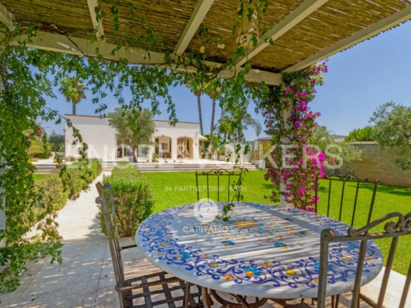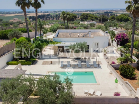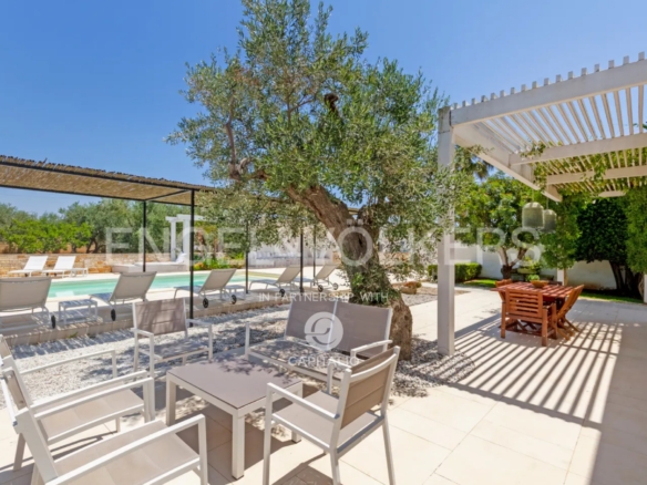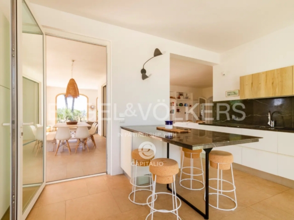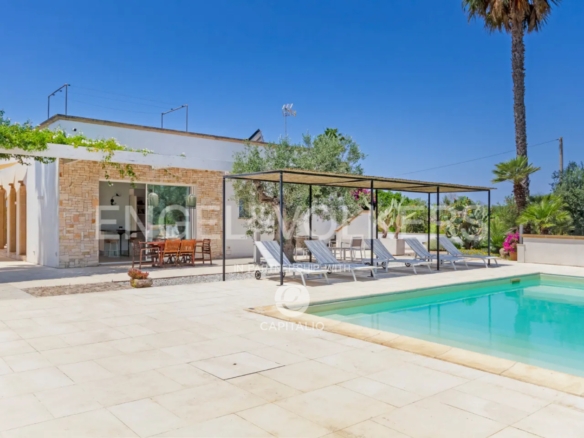 The name “otium” refers to a concept of leisure, peace, tranquility, and freedom from daily commitments. It is a time dedicated to relaxing and regenerative activities, which can find full expression in this property. Built in the nineties with quality criteria, it was intended for summer use, with the pool at the center of the back garden and plenty of greenery around. In 2018, it was renovated and made habitable in any season, while retaining much of its original character. The flooring echoes local colors, also recognizable in the tiling of the 3 bathrooms. The heating/cooling system with a heat pump ensures ideal comfort inside the 4 bedrooms and the central living area, connected to the kitchen with remarkable finishes: marble on the kitchen countertops, exposed stone on parts of the facades and decorations. Schüco aluminum fixtures, with thick glass, occupy entire walls, guaranteeing natural light at all times and effective thermal insulation. Simple and tastefully designed artificial lighting. Covered area of about 150 square meters, to which the masonry porch, perfectly south-facing, is added. External wooden pergolas providing shade, defining areas for breakfast, outdoor lunch, sunset aperitifs, and dinner with the lights of the pool and garden. From the terrace, the sea view becomes enchanting. In the center of the lawn, a gazebo recalling Provençal style and a garden with productive olive trees. It is a house also suitable for people with limited mobility because the internal and external floors coincide. Maximum security thanks to the high fence. Double entrance gate and private internal driveway. Alarm and video surveillance system. Exclusive well and compliant septic tank. Solar panel for hot water.