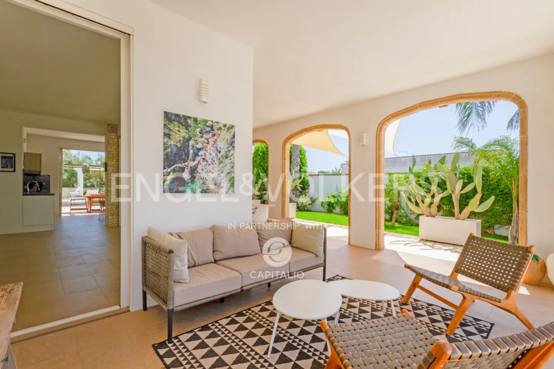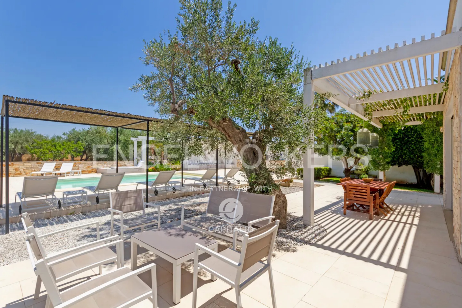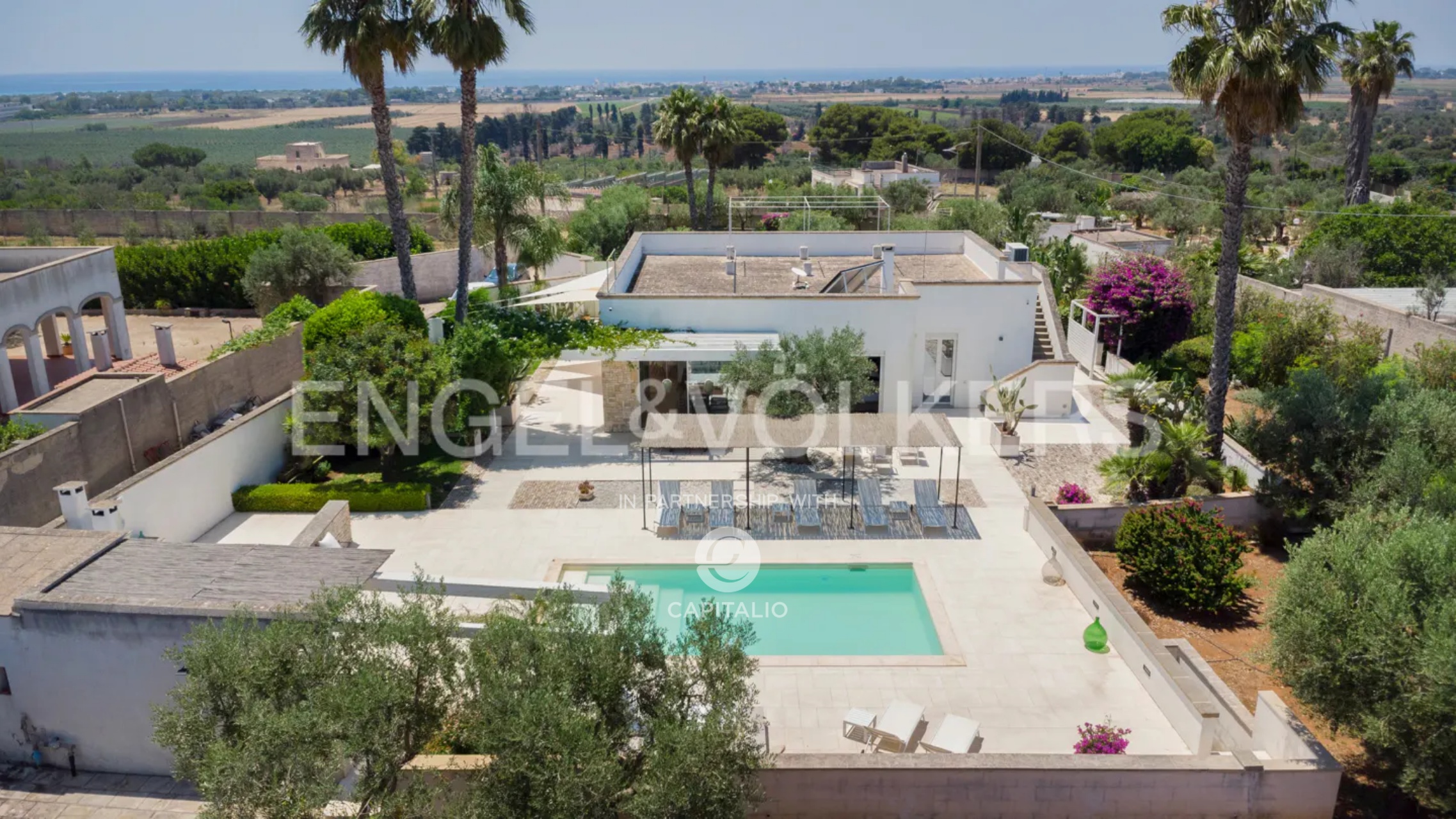 The name “otium” refers to a concept of leisure, peace, tranquility, and freedom from daily commitments. It is a time dedicated to relaxing and regenerative activities, which can find full expression in this property. Built in the nineties with quality criteria, it was intended for summer use, with the pool at the center of the back garden and plenty of greenery around. In 2018, it was renovated and made habitable in any season, while retaining much of its original character. The flooring echoes local colors, also recognizable in the tiling of the 3 bathrooms. The heating/cooling system with a heat pump ensures ideal comfort inside the 4 bedrooms and the central living area, connected to the kitchen with remarkable finishes: marble on the kitchen countertops, exposed stone on parts of the facades and decorations. Schüco aluminum fixtures, with thick glass, occupy entire walls, guaranteeing natural light at all times and effective thermal insulation. Simple and tastefully designed artificial lighting. Covered area of about 150 square meters, to which the masonry porch, perfectly south-facing, is added. External wooden pergolas providing shade, defining areas for breakfast, outdoor lunch, sunset aperitifs, and dinner with the lights of the pool and garden. From the terrace, the sea view becomes enchanting. In the center of the lawn, a gazebo recalling Provençal style and a garden with productive olive trees. It is a house also suitable for people with limited mobility because the internal and external floors coincide. Maximum security thanks to the high fence. Double entrance gate and private internal driveway. Alarm and video surveillance system. Exclusive well and compliant septic tank. Solar panel for hot water.